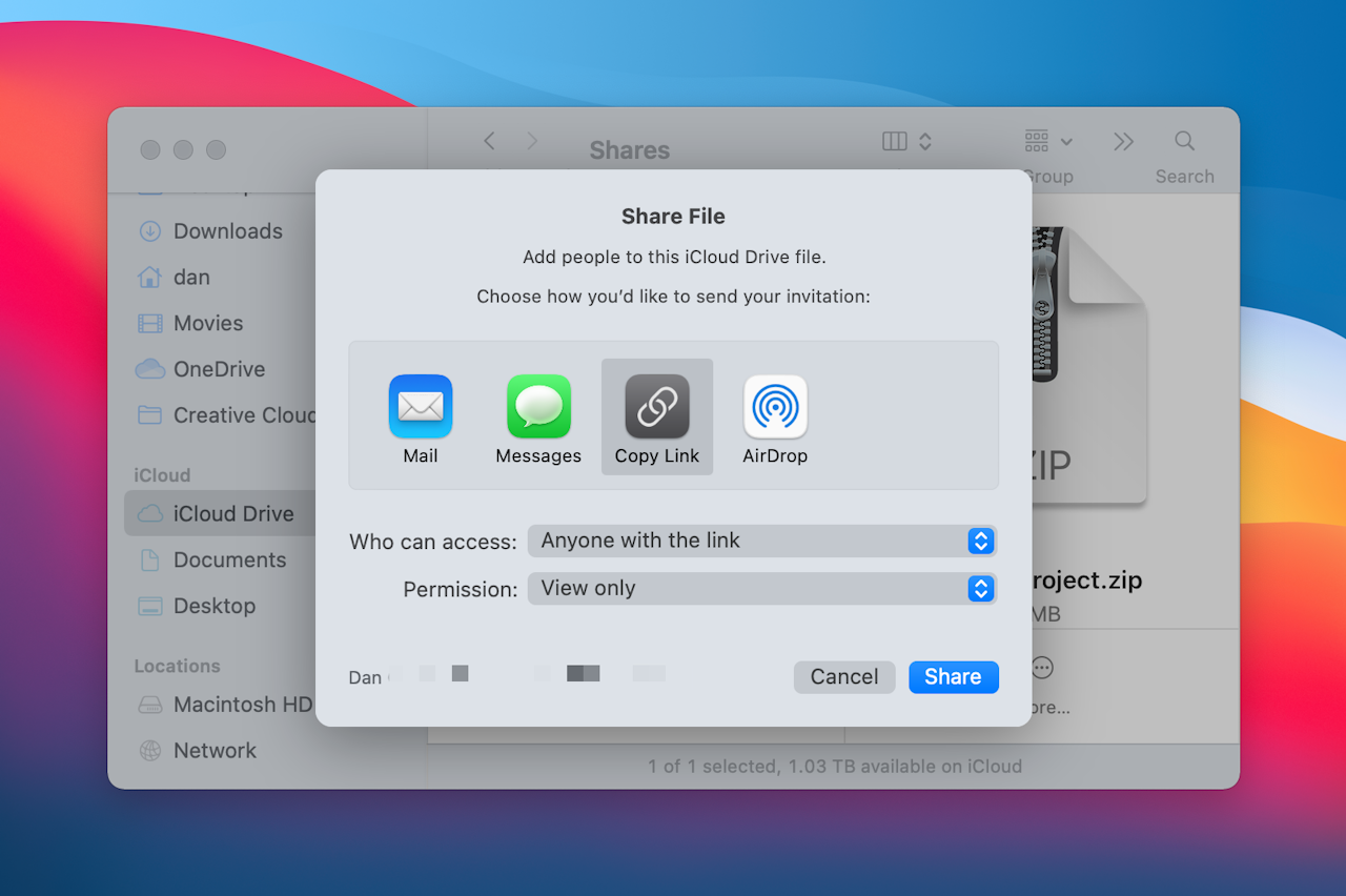 If your resulting Zip files are too large to send directly via email, you can share them via iCloud Drive.