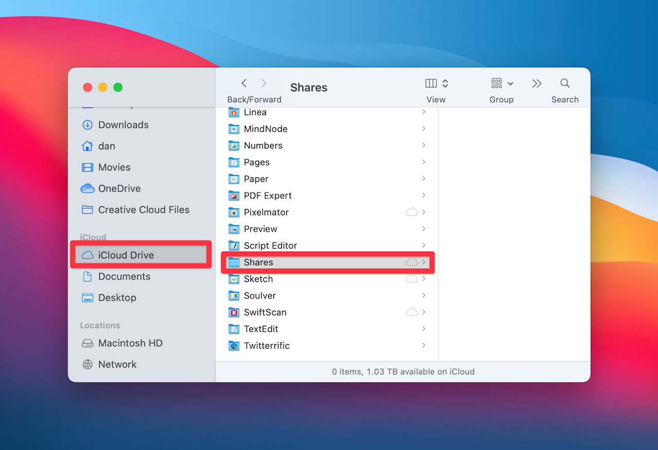 Find the project zip file we made first and the addons folder zip file. Both should be on your desktop. Move these to a folder in iCloud Drive, I share everything from a "Shares" folder I created. See screenshot for an example of this.